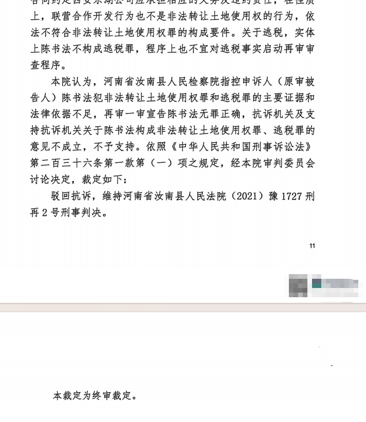 ▲2025年8月7日,驻马店市中级人民法院做出刑事裁定,维持陈书法无罪的判决