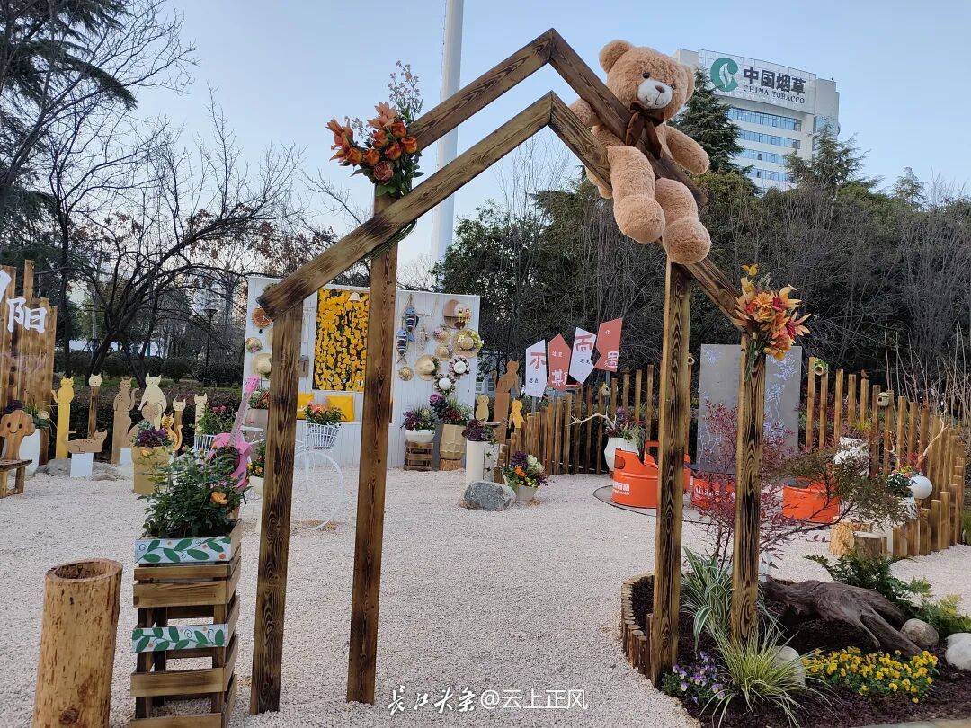 “幸会南阳 遇见园林”景观院落由市园林绿化中心东区管理所精心打造,巧妙融合南阳文化与生态关怀,将一处普通的半围合空间“变身”为集打卡、休憩、怡情于一体的沉浸式园林小品。走进院落,丰富的景观层次与情感细节扑面而来。入口处,双道防腐木门框形成天然相框;院落正中央,白色自行车花车与玫红色吉他花器构成视觉焦点,绽放的月季点亮冬日庭院;白色防腐木墙面上,设计了温馨的飘窗景观、暖黄色靠垫、原木钟表、花艺草帽等元素,共同营造出家的亲切感。