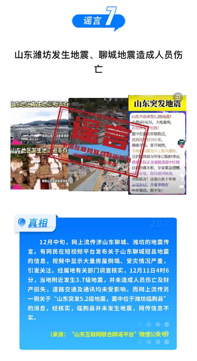 中国互联网联合辟谣平台2025年12月辟谣榜发布