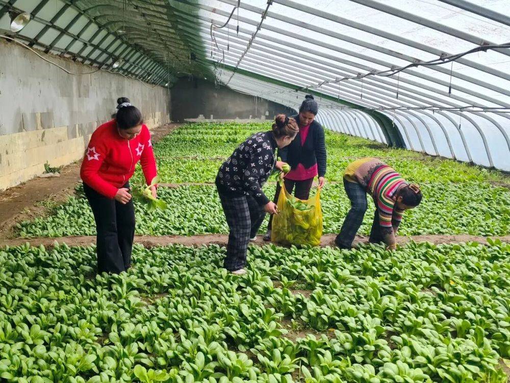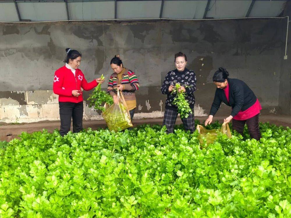 在萨罕镇美丽乡蔬菜种植合作社温室大棚,暖意融融、生机盎然,一排排芹菜青翠挺立,合作社员工正忙着采收、分拣,准备送往市场销售。