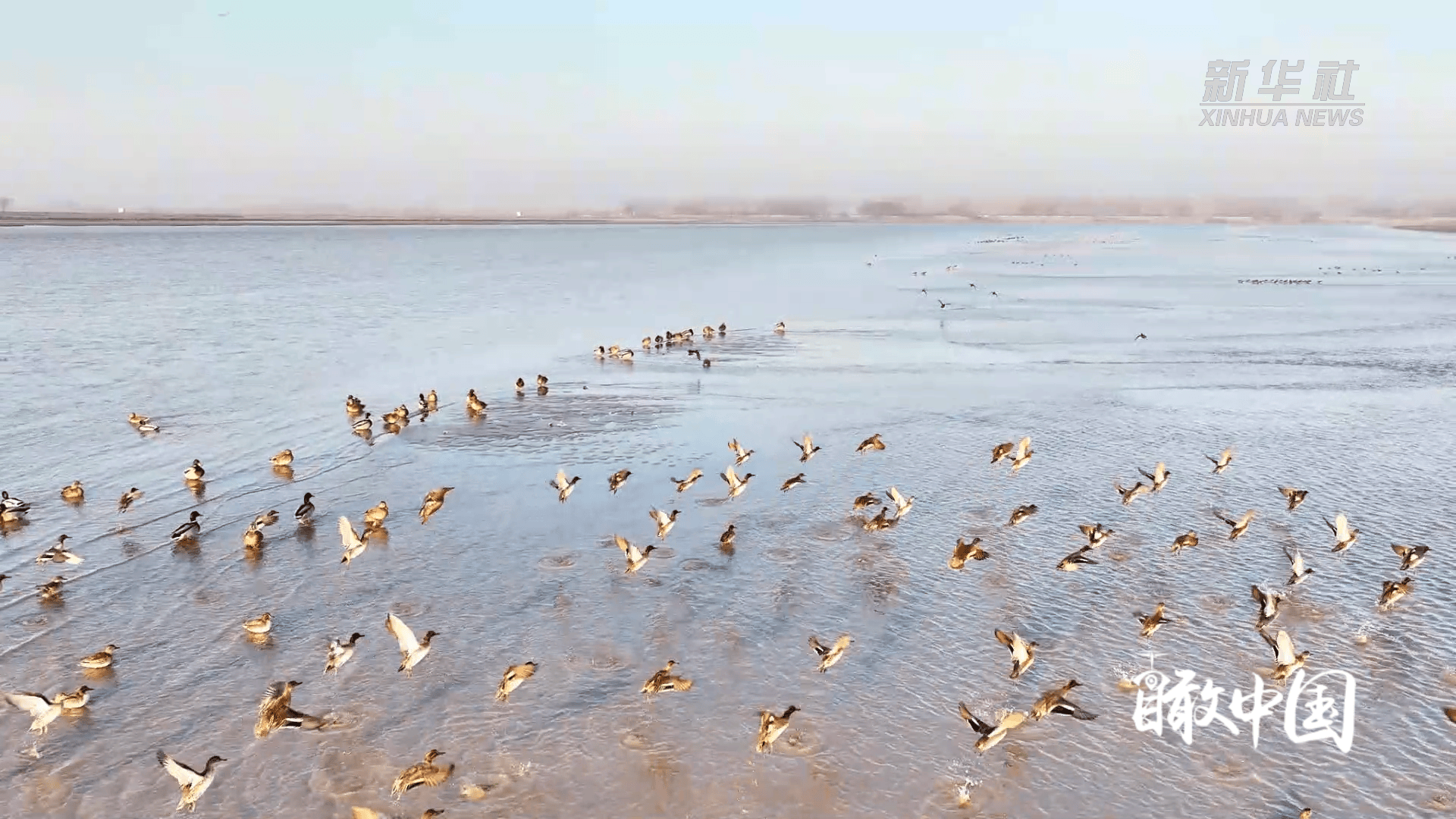 成群的水鸟在其间自在嬉戏,惬意地享受着日光浴,与壮美的黄河共同绘就一幅和谐安宁的生态画卷。