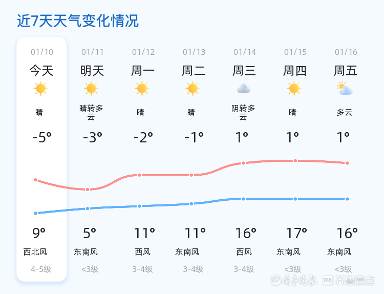 未来三天(1月12日至1月14日),枣庄市气温将逐步回升,最高气温可达11℃,最低气温仍维持在-5℃左右。天气以晴到多云为主,13日和14日部分地区可能出现阴天,风力有所增强。市民需注意防寒保暖,尤其是早晨和夜间时段,建议增添衣物,预防感冒。