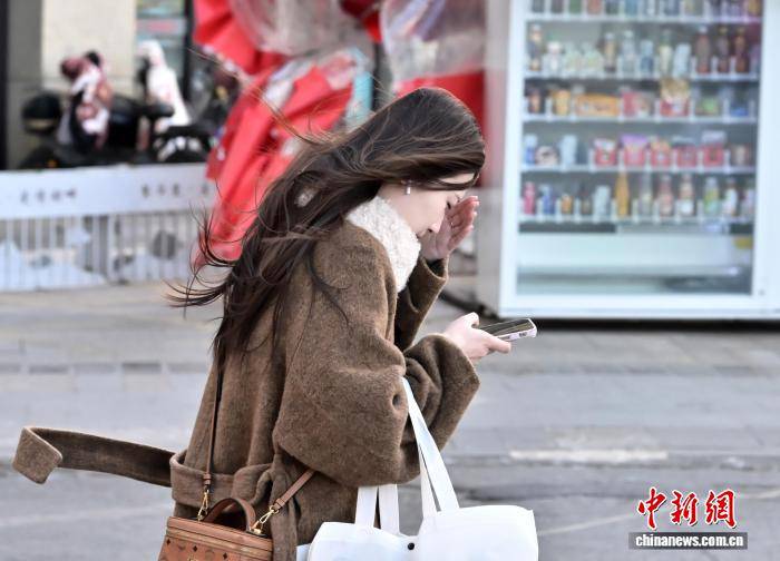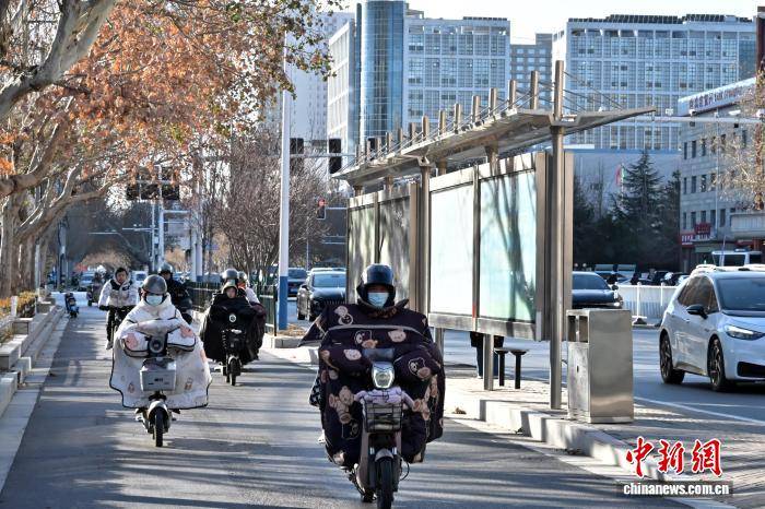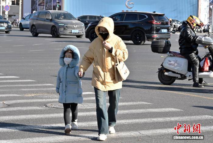 1月10日,受冷空气影响,河北石家庄遭遇大风降温天气。图为市民出行。中新社记者 翟羽佳 摄