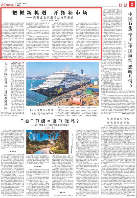 还报道了《把握新机遇 开拓新市场——民营企业发展活力持续激发》,眼下,在河南省卫辉市循环经济产业园,由河南银金达集团投资建设的年产5万吨功能性聚酯薄膜二期项目现场,工人正在有序推进新建厂房设备安装调试。
