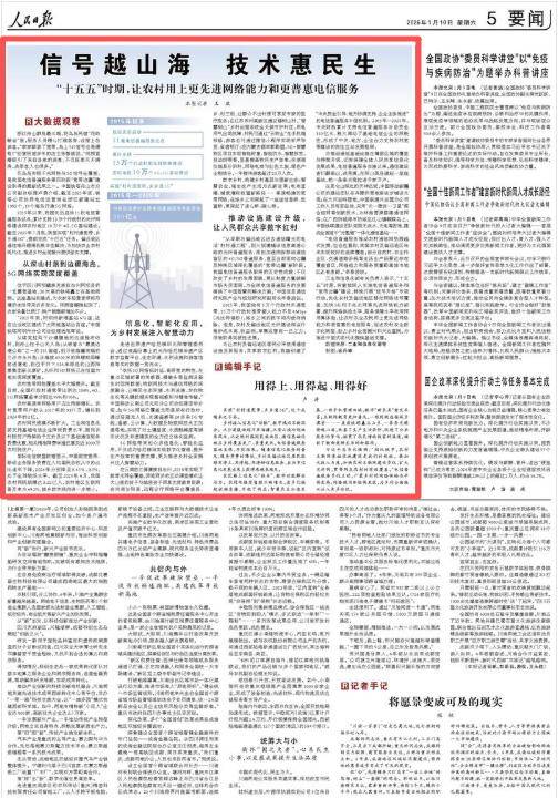 还报道了《信号越山海 技术惠民生(大数据观察)“十五五”时期,让农村用上更先进网络能力和更普惠电信服务》。在河南汝阳县,远程诊疗网络平台覆盖县、乡、村三级,让群众不出村便可享受专家的医疗服务。