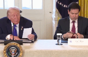 这时,坐在一旁的“递条专业户”国务卿鲁比奥,不知在一张纸上写了什么,随后不动声色地悄悄递给了正眉飞色舞绘制宏伟蓝图的特朗普。一如当初他递纸条提醒特朗普“加沙停火协议达成”那般。