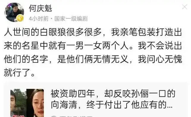 随后网友们更加愤怒,指责何庆魁拉偏架实则是不了解情况。在见识到这“水深火热”后,何庆魁选择道歉。表示自己已经和闫学晶多年没有来往。