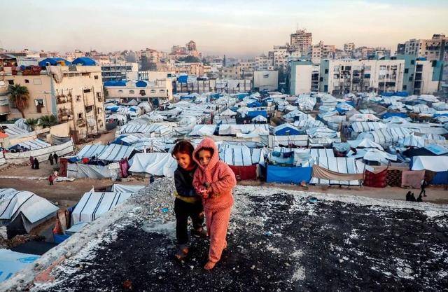 2025年12月22日,在加沙城西部一处临时避难所附近的巴勒斯坦儿童。图/新华