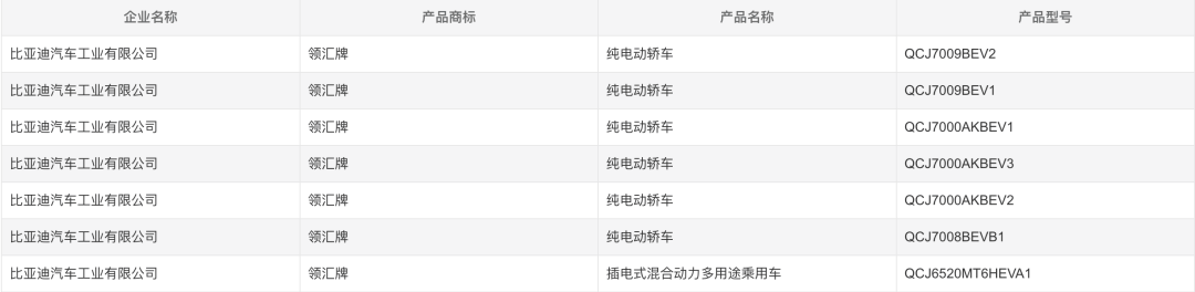 在最新一期工信部申报图中,《汽车行业关注》发现比亚迪汽车工业有限公司新增“领汇”品牌,并在工信部申报多款车型,包括领汇e5、领汇e7、领汇e9、领汇M9四款车型,其中e系列均为纯电车型,领汇M9是唯一一款插混车型。由于采用全新品牌命名,这些车型也同步采用全新品牌标识。值得一提的是,这四款车型其实都不是全新车型,而是有比亚迪现有车型换标而来。