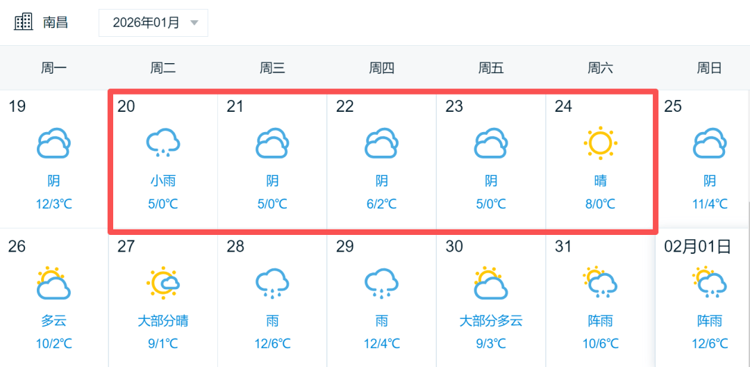 20日南昌最低气温仅有0℃