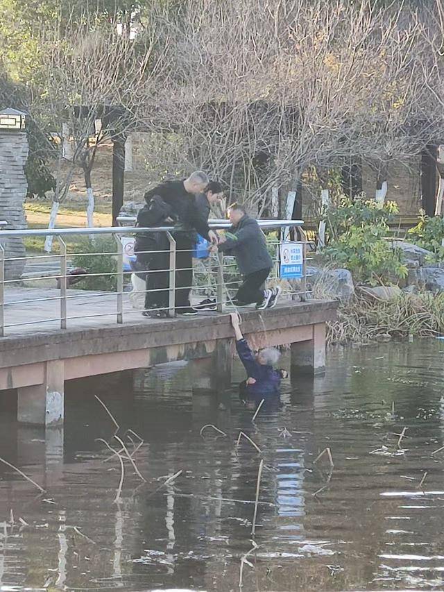千钧一发之际,一位头发花白的大爷没有半分迟疑,连衣服都来不及脱,纵身一跃,扎进了冰冷的湖水中。