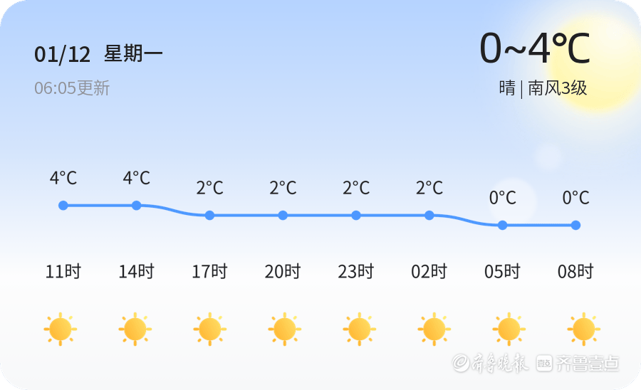 今天是2026年1月12日,农历十一月廿四,威海市迎来了一天的晴朗天气。全市各区气温维持在0℃至4℃之间,南风3级,空气湿度53%,PM2.5指数为20,空气质量良好。市民朋友们可以享受冬日的阳光,但早晚温差较大,出行请注意保暖。