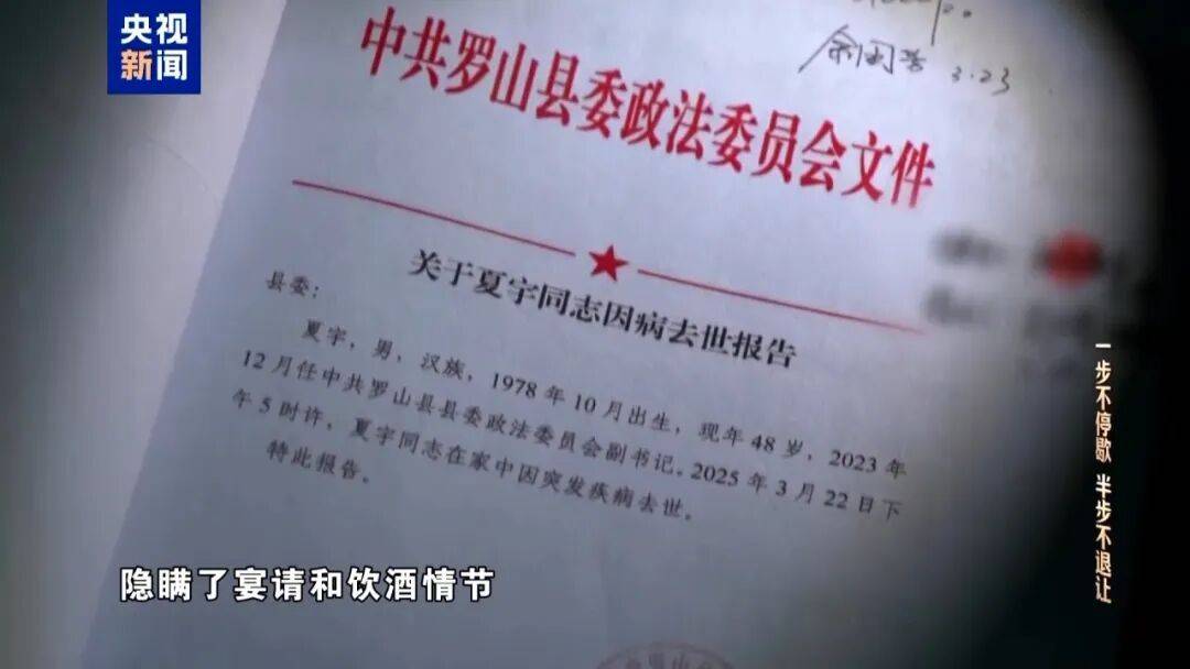 私下给死者家属补偿之后,李献林自以为能就此掩盖问题了。第二天,县委政法委向县委书面报送的报告中,只说夏宇是“突发疾病去世”,隐瞒了宴请和饮酒情节。时任县委书记余国芳明知该报告不实,但未向上级党组织报告。