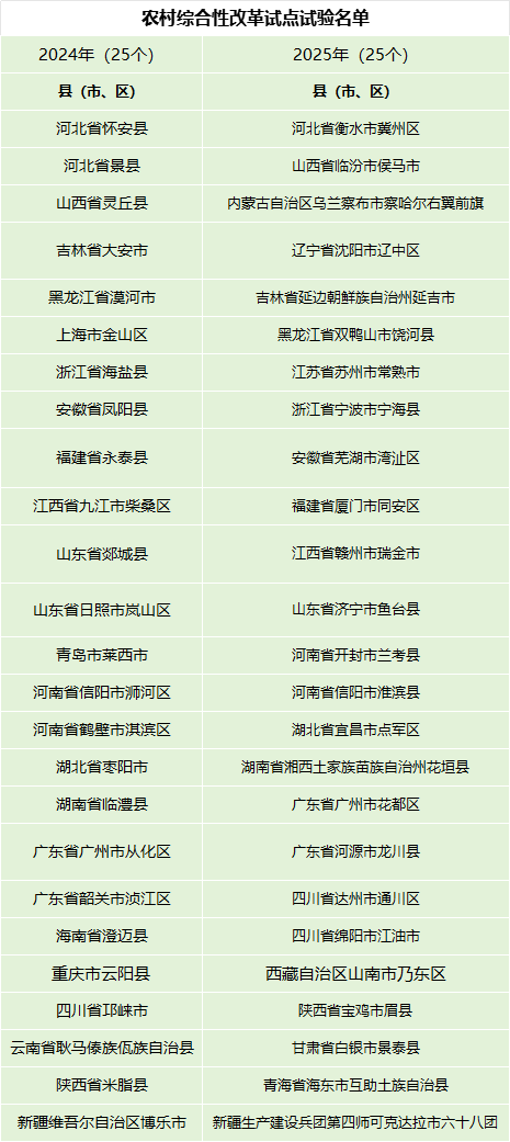 附:2024-2025年农村综合性改革试点试验名单