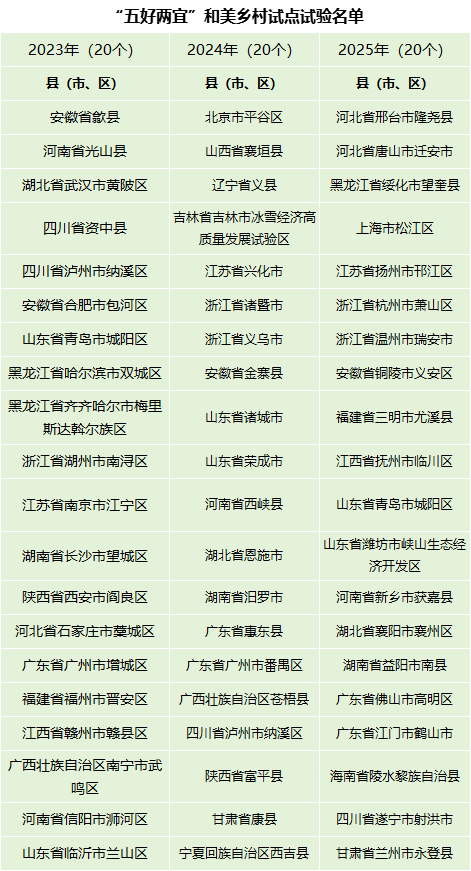 附:2023-2025年“五好两宜”和美乡村试点试验名单