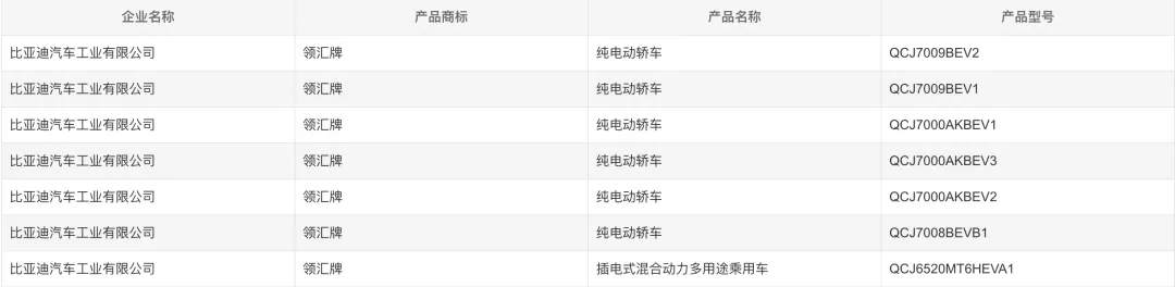 在最新一期工信部申报图中,《汽车行业关注》发现比亚迪汽车工业有限公司新增“领汇”品牌,并在工信部申报多款车型,包括领汇e5、领汇e7、领汇e9、领汇M9四款车型,其中e系列均为纯电车型,领汇M9是唯一一款插混车型。由于采用全新品牌命名,这些车型也同步采用全新品牌标识。值得一提的是,这四款车型其实都不是全新车型,而是有比亚迪现有车型换标而来。