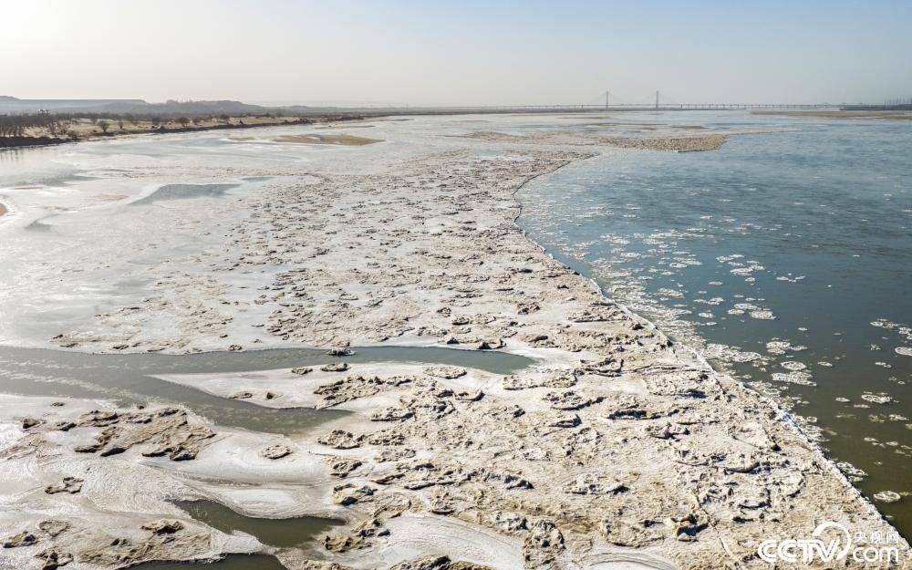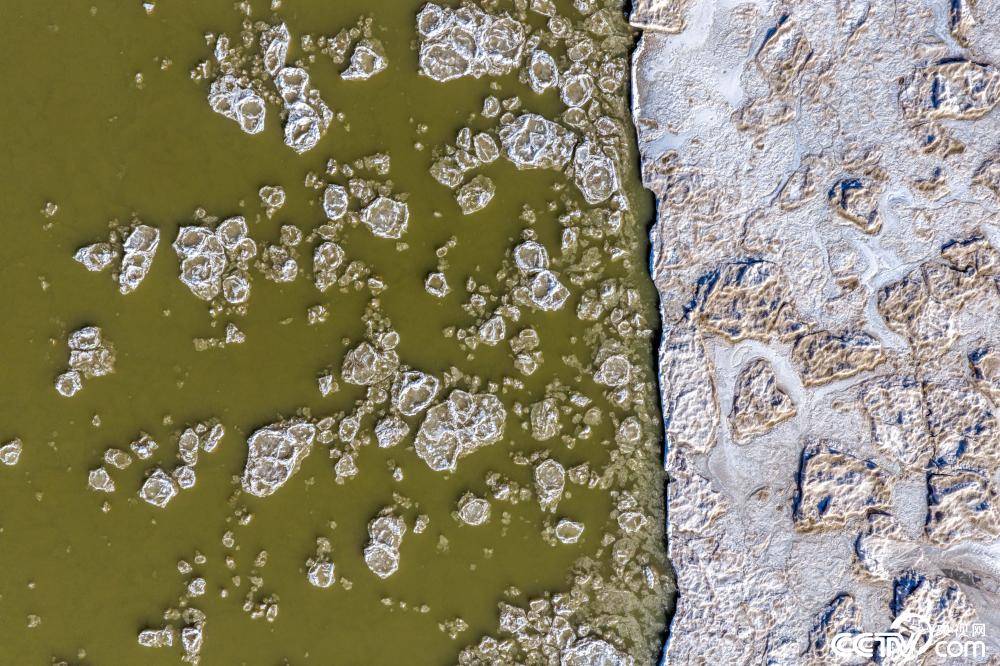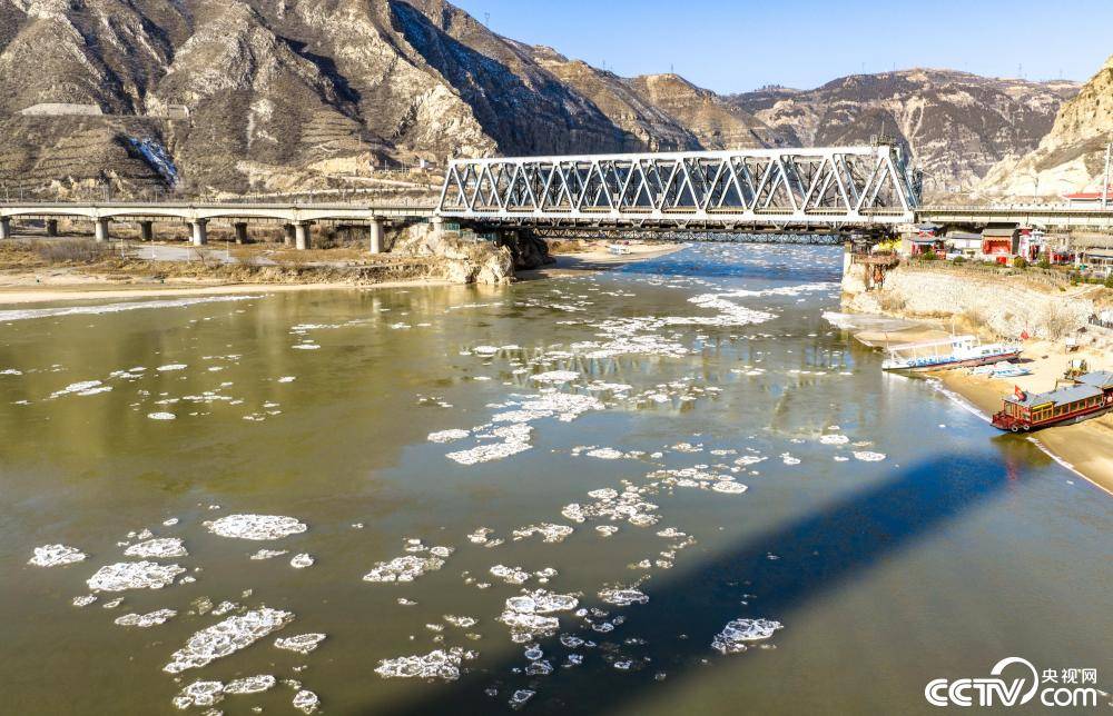 1月10日,山西河津,黄河流凌蔚为壮观。近日,受低温天气影响,位于山西省河津市与陕西省韩城市的黄河河道出现流凌,构成了一幅美丽的冬日画卷。来源:央视网