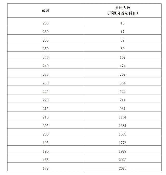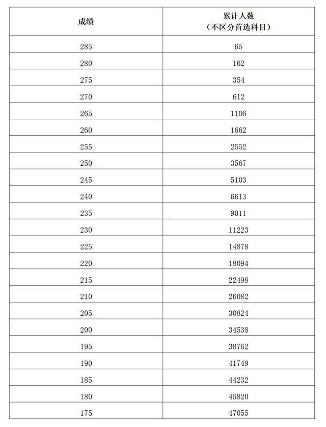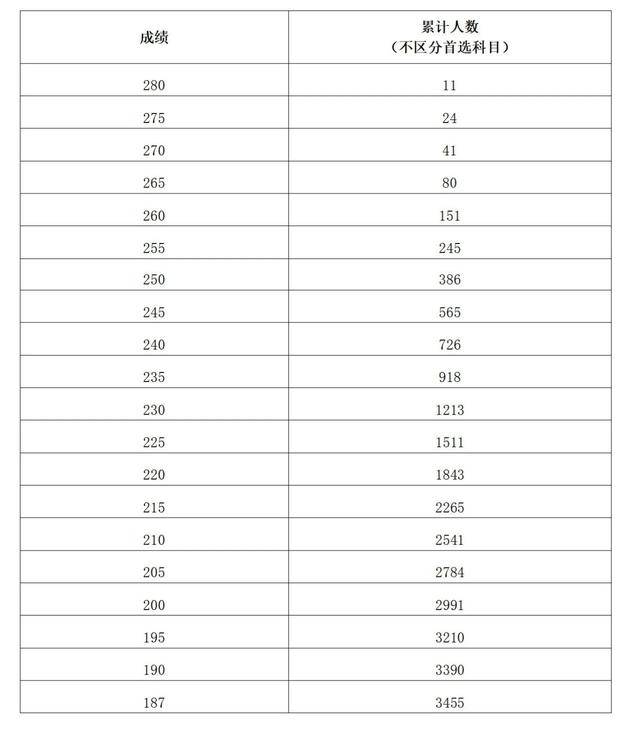 注:累计人数指该对应分数及以上考生累计人数(下同)