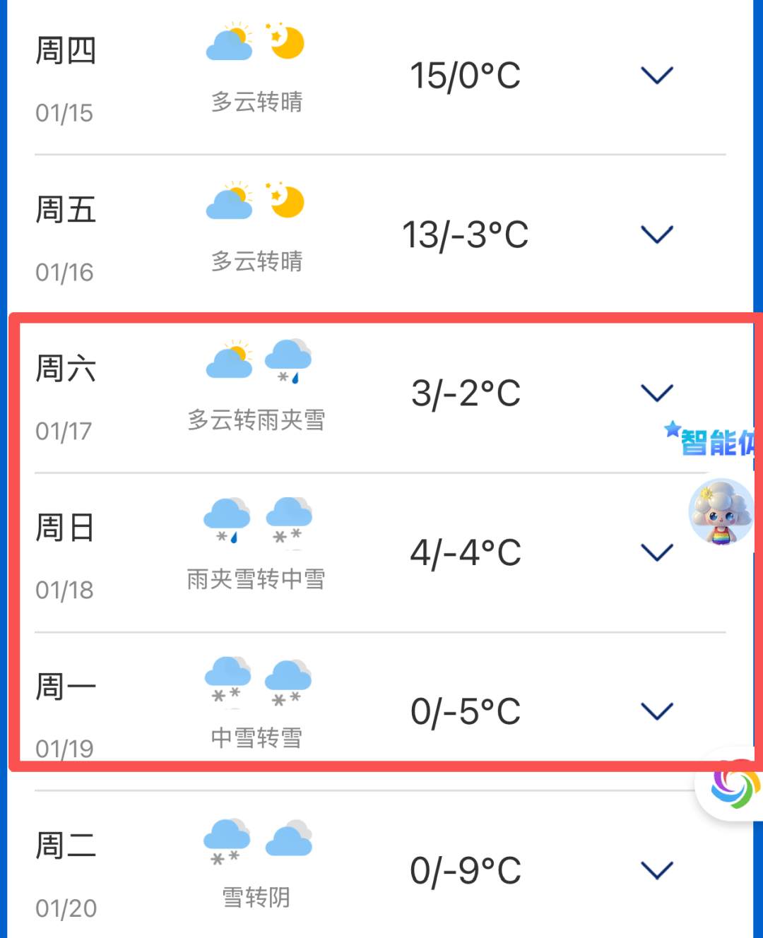 14日夜间到15日白天,晴间多云,偏南风短时北风3级,气温-1~15℃。