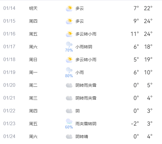 本次天气过程的重头戏在周末。预计19日开始,一股实力强劲的寒潮将自北向南影响我市,带来今冬以来最显著的一次强降温、降雨(雪)及大风天气。过程降温幅度预计可达12℃左右,气温“断崖式”下跌,最低气温将骤降至零下0℃左右。同时,伴随阴雨天气,局部地区可能出现雨夹雪或冻雨,风力明显加强,局地阵风可达6~8级,寒意骤增。