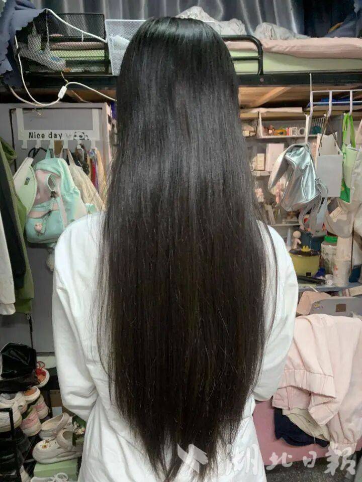为了使头发满足捐赠标准,她坚持不烫染头发,每天喝黑米粥,防止头发受损。
