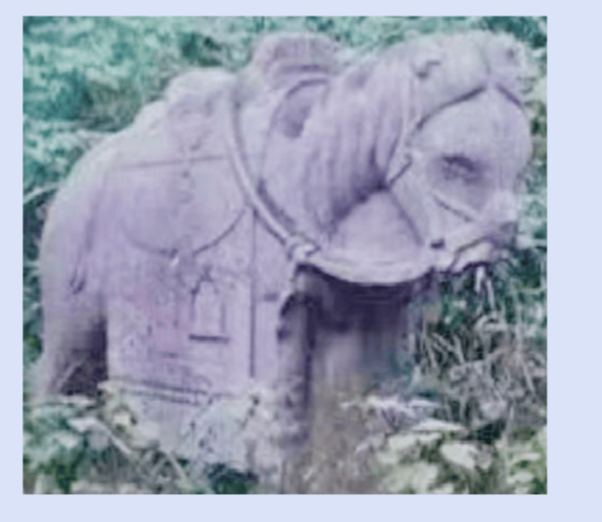 上图为石马,明代文物,长200.0cm、宽60.0cm、高180.0cm、重2000kg,基本完整但局部有破损;2004年12月19日在河南省封丘县城关乡边庄村被盗,由封丘县公安局立案。