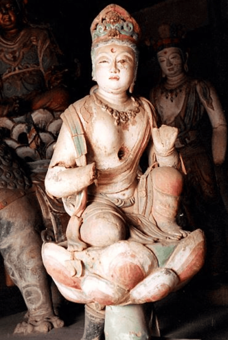供养菩萨一尊,高0.94 米,为唐代塑像,1999年11月24日在山西省五台县阳白乡李家庄村被盗。