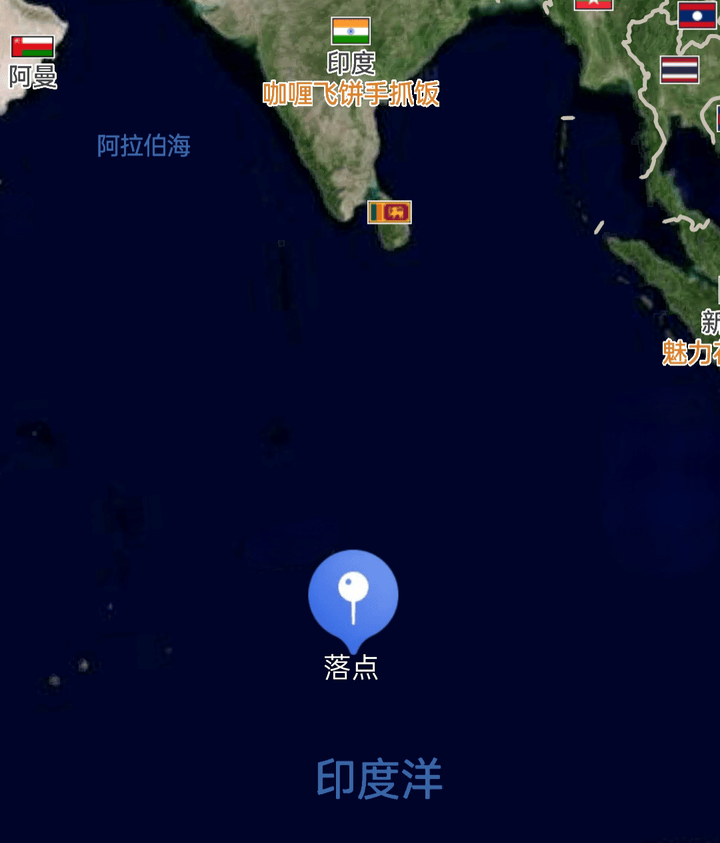 就是说印度发射失败的这16颗卫星,连同第三级火箭将在印度洋东经75度、南纬18度的坐标点进入大气层坠毁,而这个坐标点几乎就是印度洋的正中心位置,在印度本土正南方向大约有3000公里。