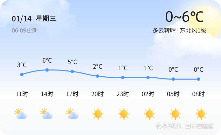 今天是1月14日,农历十一月廿六,星期三。德州市今天天气多云转晴,气温在0℃到6℃之间,东北风1级,空气湿度80%。PM2.5指数为75,属于良好,对人体健康影响较小。不过,今天早晨气温较低,市民出行时仍需注意保暖,尤其是老人和儿童,建议增添衣物以防感冒。此外,风力较小,适合户外活动。未来三天,德州市天气将以晴好为主,但气温变化较大。明天(1月15日)天气晴朗,气温将升至-3℃到13℃,风力有所增强,市民出行时应做好防晒和防风准备。16日多云,气温在-3℃到6℃之间,风力3-4级,建议市民外出时注意保暖和防风。17日天气多云转小雪,气温有所下降,市民需注意防范雨雪天气对出行带来的不便。温馨提示