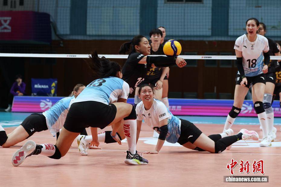 1月13日,在北京光彩体育馆举行的2025-2026中国女子排球超级联赛常规赛A级第九轮比赛中,北京北冰洋3:1胜河南双汇。图为北京女排刘立雯成功救球。中新社记者 王紫儒 摄