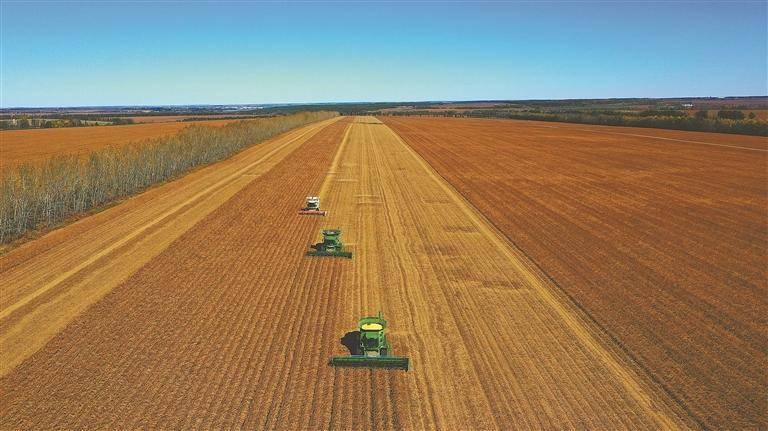 北大荒集团大豆收获现场(资料片)。庞遵明摄