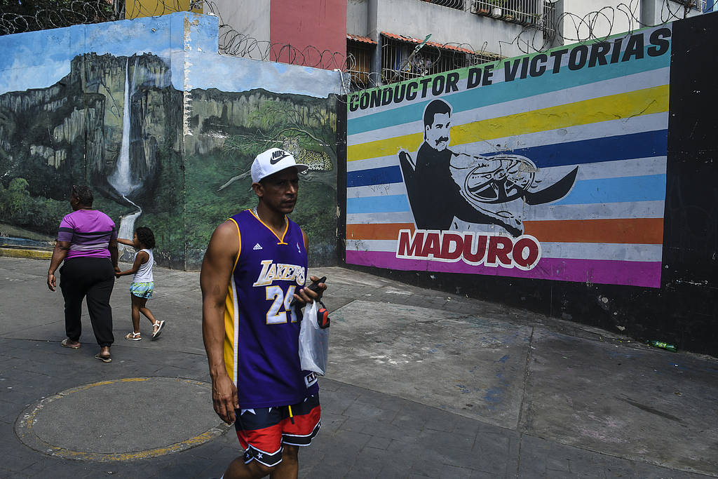 当地时间2026年1月8日,委内瑞拉加拉加斯,人们走过一幅描绘委内瑞拉总统尼古拉斯·马杜罗的壁画。视觉中国 图