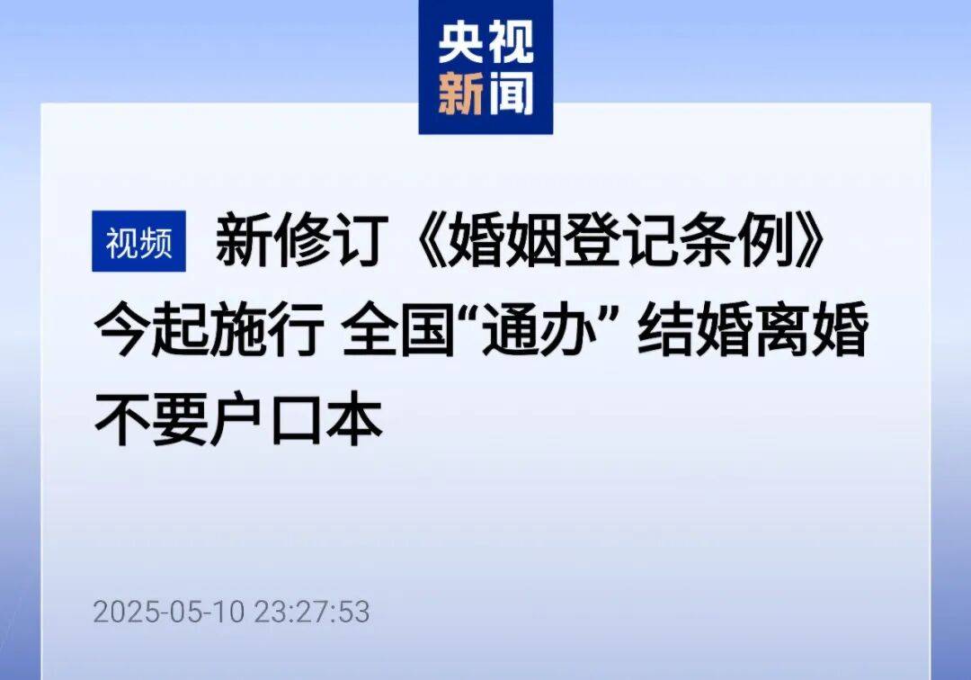 取消户口本,意味着只要一张身份证,随时随地都能登记结婚,不必受困于“父母之命”或高额彩礼。