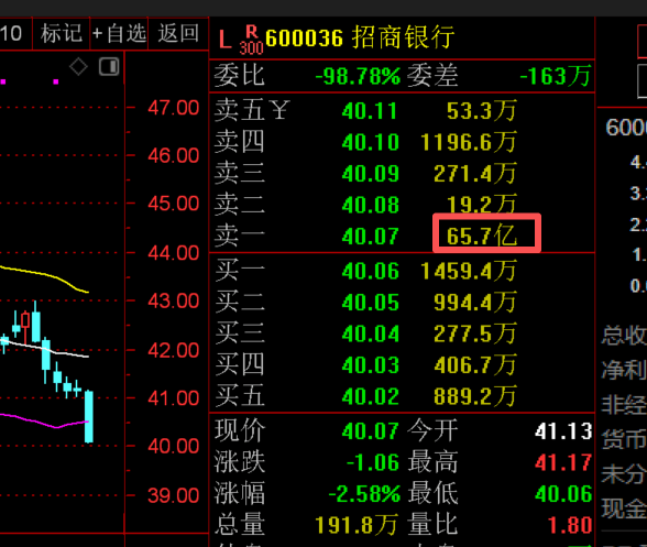 此外,A股尾盘集合竞价多只权重股现巨额压单,其中招商银行压单金额超65亿元,紫金矿业、长江电力、中国铝业、上汽集团、兴业银行、中国中免、中国平安、恒瑞医药、贵州茅台压单金额均超10亿元。
