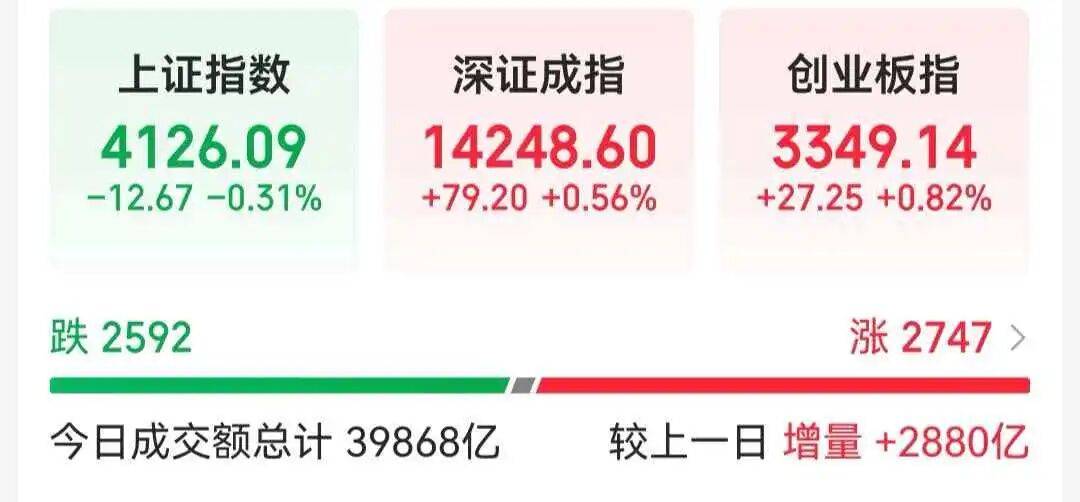 1月14日,市场冲高回落,沪指午后快速翻绿,此前一度涨超1%。A股成交额3.99万亿元,创历史天量,较上一个交易日放量2880亿元。这也是1月9日成交额突破3万亿元后,市场连续4个交易日维持3万亿以上规模。盘面上,市场热点快速轮动,全市场超2700只个股上涨。截至收盘,沪指跌0.31%,深成指涨0.56%,创业板指涨0.82%。
