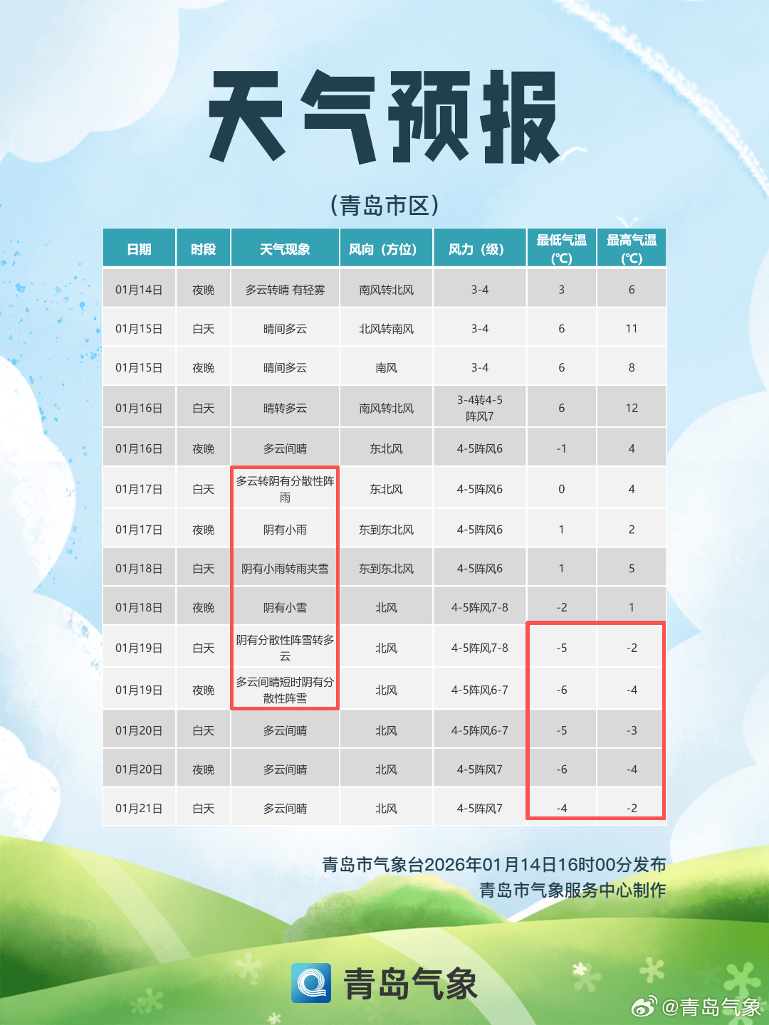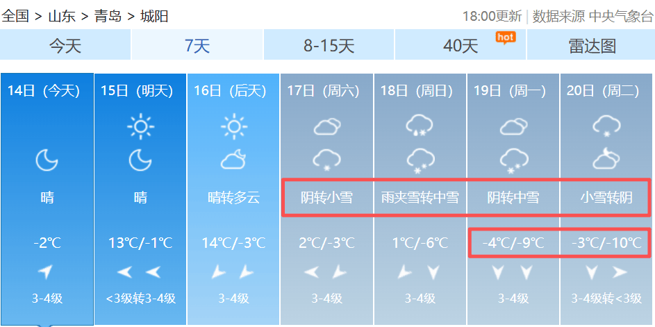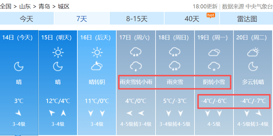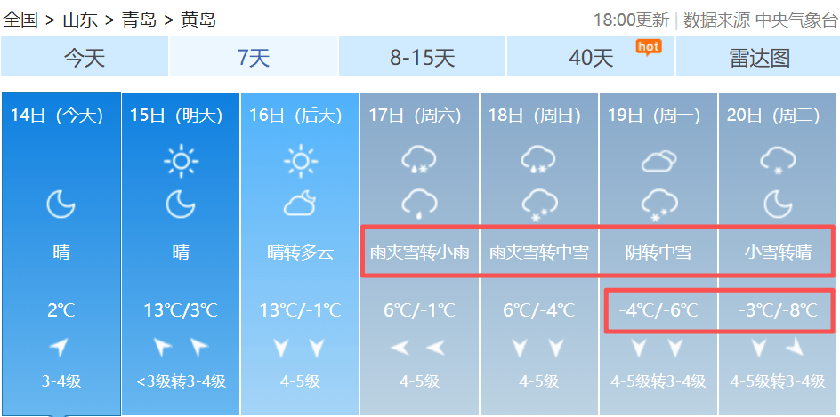 青岛市气象台14日16时发布
