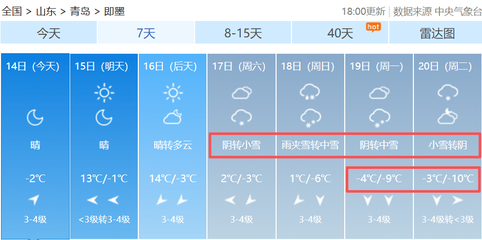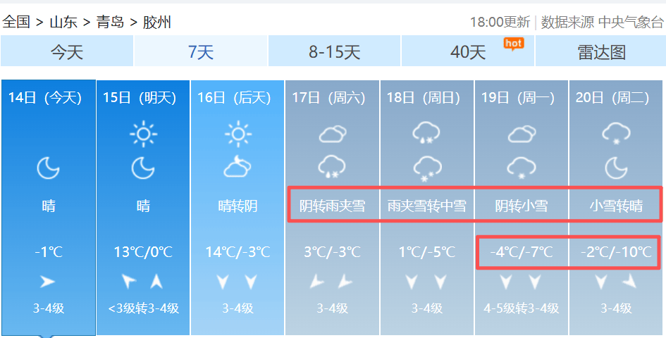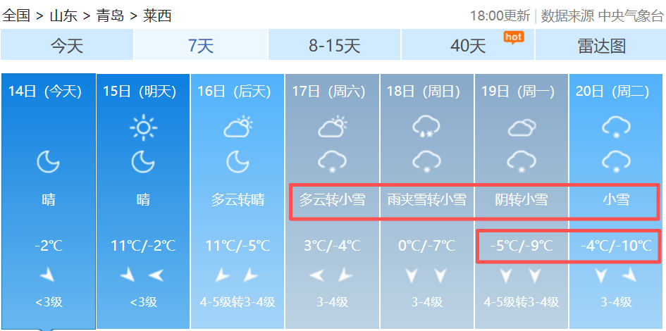 其中,平度最低温将达-11℃