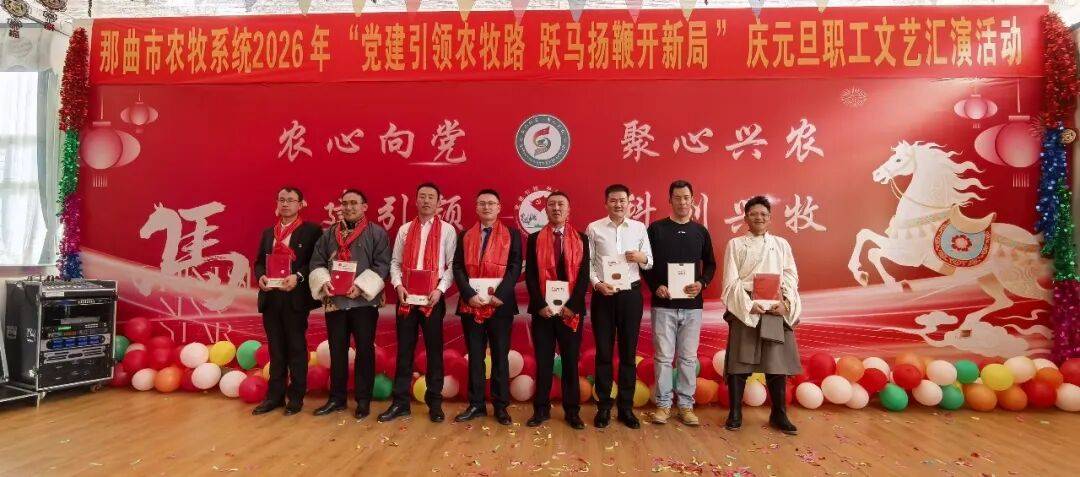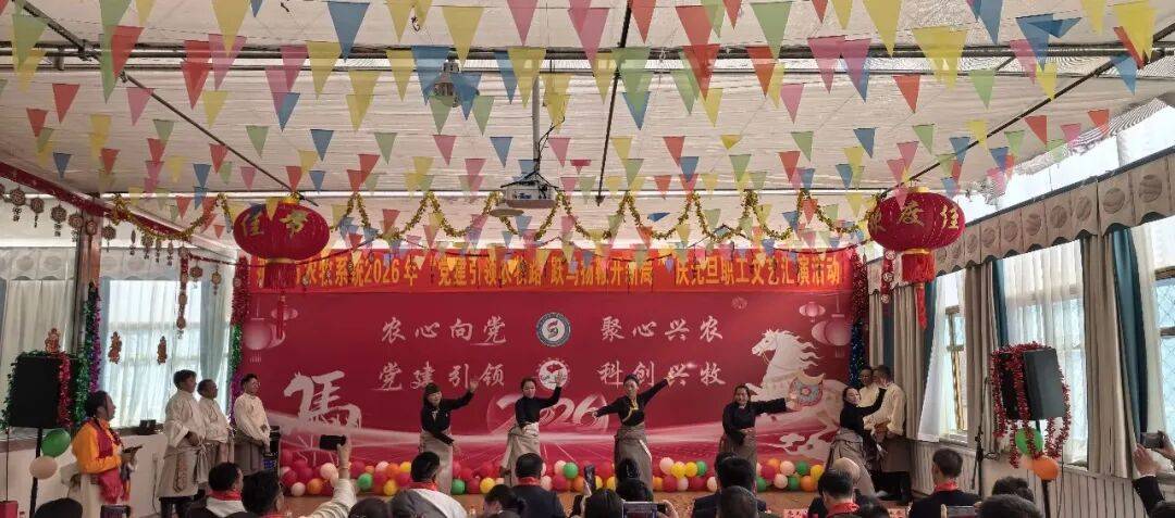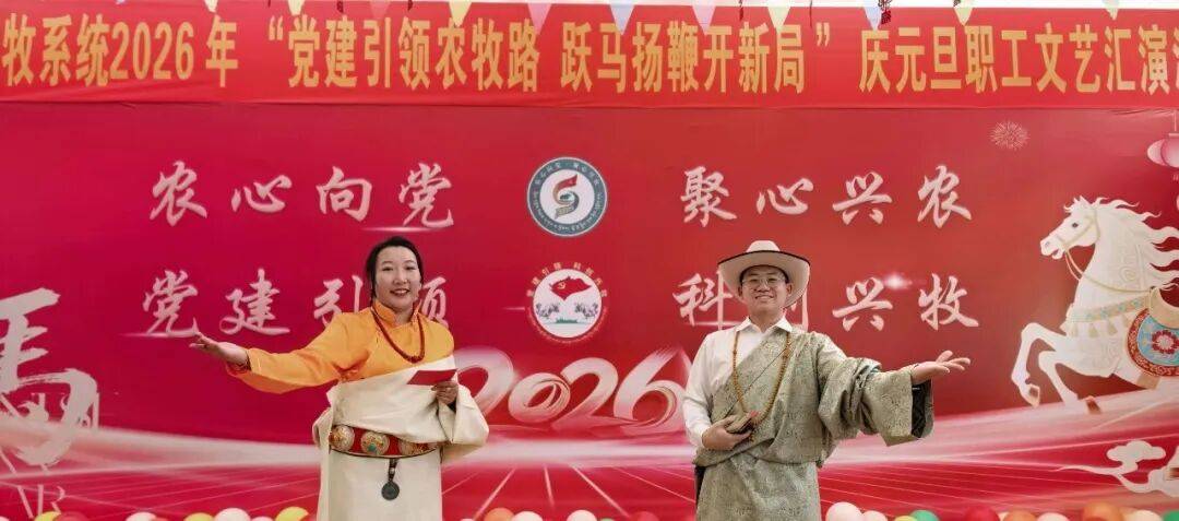 前不久,西藏那曲市农业农村局联合市农牧业(草业)科技研究推广中心共同举办以“党建引领农牧路 跃马扬鞭开新局”为主题的2026年庆元旦职工文艺汇演。市农业农村局党组书记、副局长,市农牧业(草业)科技研究推广中心党组书记、副主任次仁德吉,两家单位领导班子成员、县级干部及全体干部职工欢聚一堂,共庆新年。