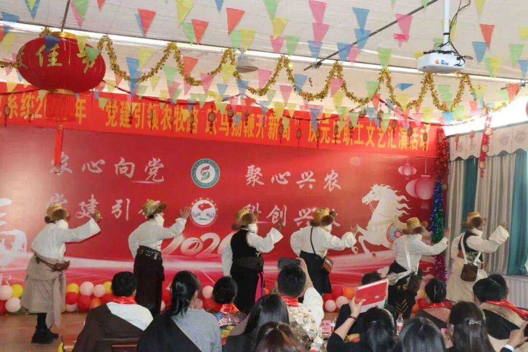 活动紧扣“党建引领农牧路 跃马扬鞭开新局”主题,以文艺形式凝聚人心、展望未来。汇演在热情澎湃的《锅庄舞》中拉开序幕,随后《扇子舞》《健康西藏行动起来》《相亲相爱》及《舞蹈串烧》等节目精彩呈现,充分展现了干部职工多才多艺、昂扬向上的风貌。活动中还穿插了知识竞赛、“开盲盒”“传糌粑”等趣味环节,以及诙谐的《三句半》表演,有效增强了互动性与团队凝聚力。最终,演出在深情演绎的舞蹈《共产党的恩情沉甸甸》中圆满落幕,抒发了干部职工对党的忠诚与感恩的真挚情感。