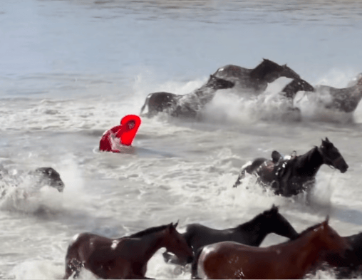 2021年7月,曾有媒体报道,时任伊犁州文旅局副局长的贺娇龙在昭苏县湿地公园拍摄天马浴河时意外摔入河里,被骑手救上河岸后换马继续。贺娇龙在接受采访时说:“已经好几次从马背上摔下来了,只是这次正好无人机拍到了。”