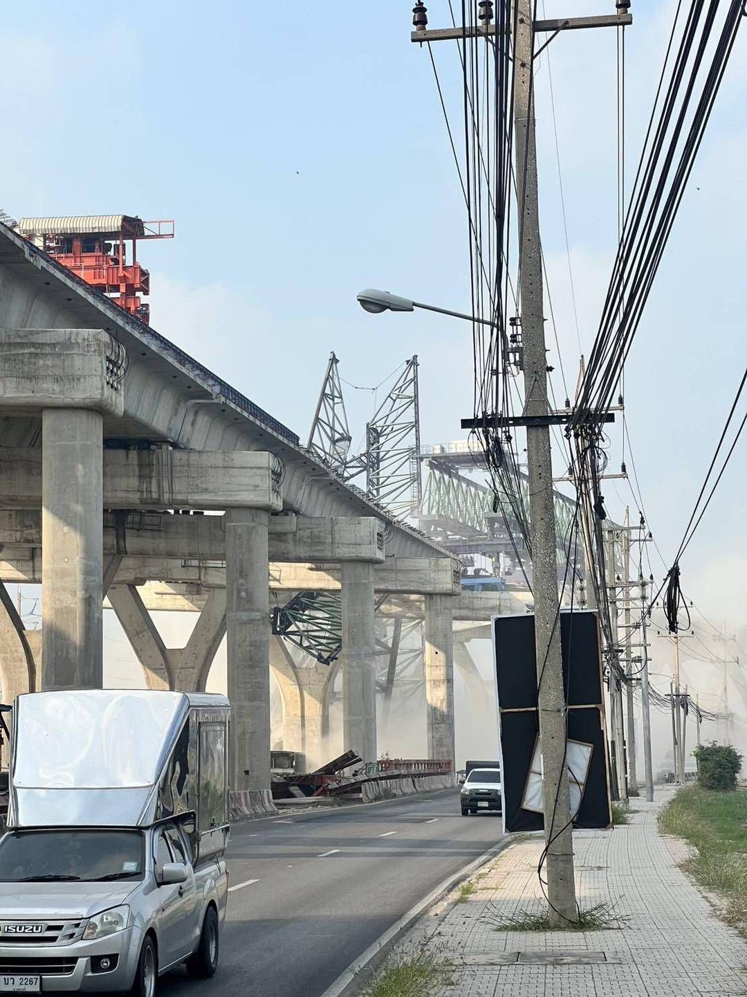 据报道,事故发生于当地时间1月15日(星期四)上午9点15分,在沙没沙空府拉玛二路(出城方向)上,一台建筑起重机在通往塔钦河大桥的路段倒塌。