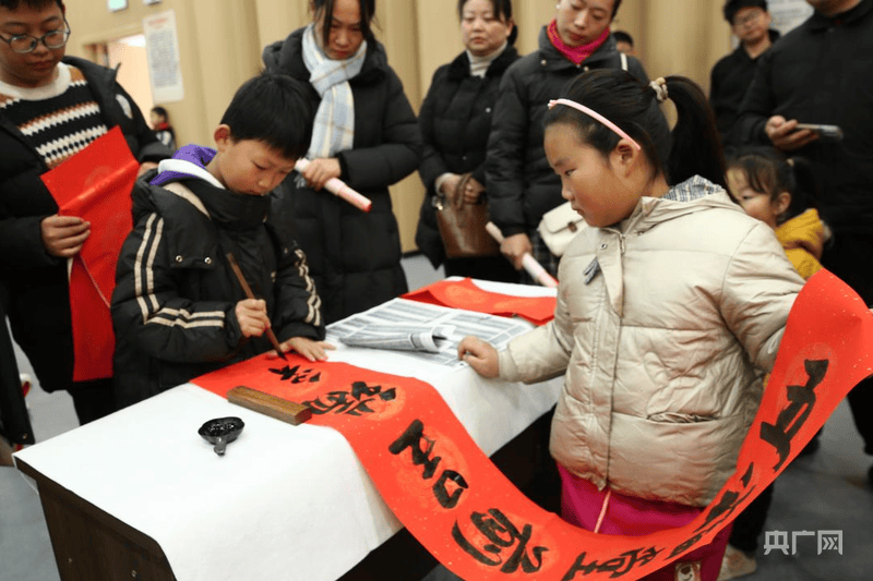 小朋友在写春联(央广网发 张旭 摄)