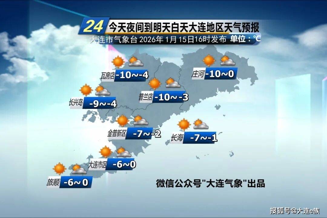 预计15日20时到17日8时,大连市中山区、西岗区、沙河口区、甘井子区、高新区各街道气温将明显下降,降温幅度8~10℃,17日早晨最低温度-11~-9℃。并伴有大风天气,16日5时至17日8时偏北风风力较大,大连近海及沿岸地区阵风最大可达8~9级,内陆阵风最大可达7~8级。请相关部门做好防寒潮准备工作。请广大市民注意防风保暖,对各类作物积极采取防冻措施。大连市气象台2026年01月15日14时35分发布。