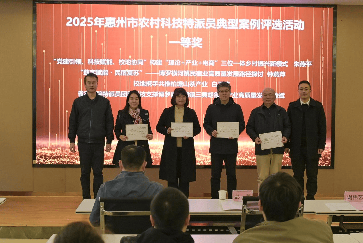 活动表彰了2025-2026年度表现突出的科技特派员案例与个人,树立了一批“沉得下、留得住、用得好”的服务典范。现场,惠州市科技局与惠州工程职业学院领导共同为“惠州市农村科技特派员工作站”揭牌,标志着惠州科技特派员工作从“分散作战”转向“组团服务”,为“百千万工程”筑牢了坚实的科技服务阵地。