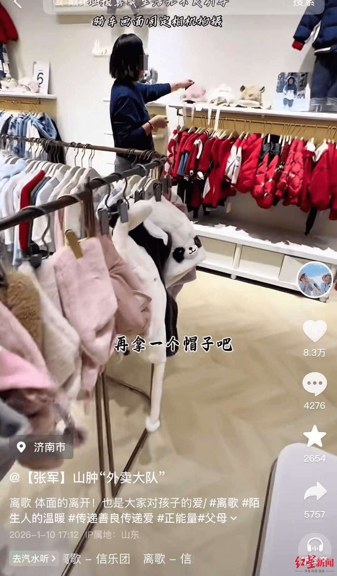 ▲潘女士当时在店里为孩子挑选衣服(图源:张军个人社交账号视频截图)