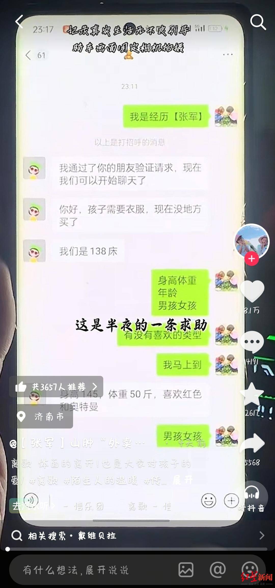 1月15日,红星新闻记者联系上张军。据他介绍,前述买新衣一事发生在1月7日晚上11点左右,当时有一位病友给他打电话,称孩子状态不太好,需要一套新衣服,“这不是我第一次在深夜给(患病)孩子买衣服,有很多孩子都有过类似的求助,让孩子穿上新衣服体面地离开。”
