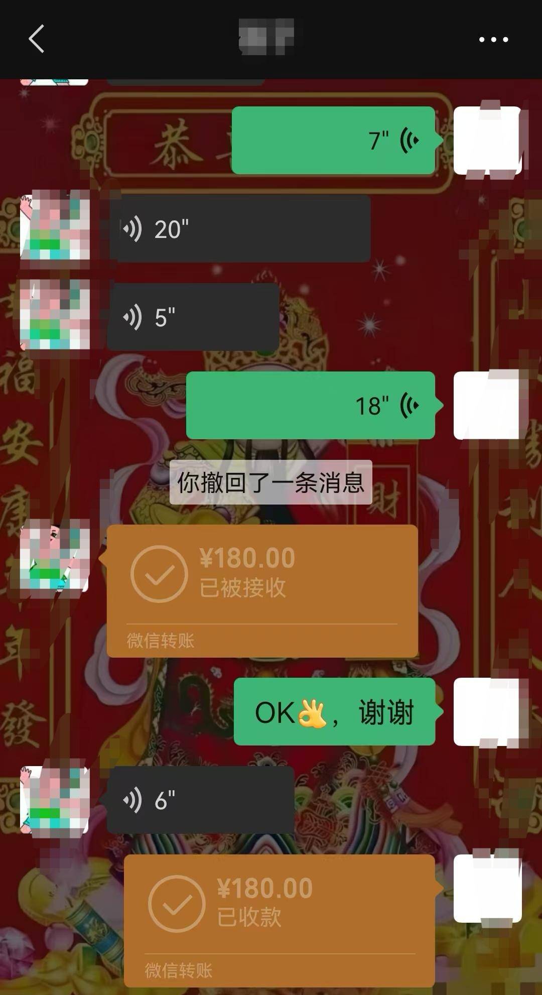 ▲1月15日,黄先生收到对方180元餐费 受访者供图