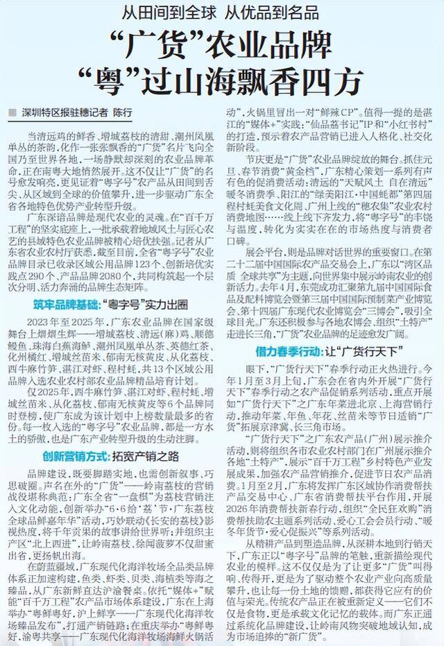 当清远鸡的鲜香、增城荔枝的清甜、潮州凤凰单丛的茶韵,化作一张张飘香的“广货”名片飞向全国乃至世界各地,一场静默却深刻的农业品牌革命,正在南粤大地悄然展开。这不仅让“广货”的名号愈发响亮,更见证着“粤字号”农产品从田间到舌尖、从区域到全球的价值攀升,进一步驱动广东全省各地特色优势产业转型升级。