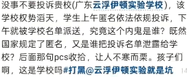近日,网上多个账号发布称,有疑似广东云浮市伊顿实验学校的学生匿名投诉学校,下午就被学校得知,并找到举报学生,事件引发网友热议,另有人认为学校侵犯学生隐私。