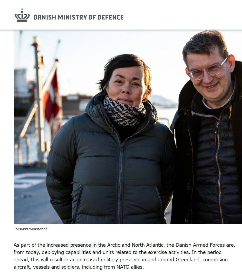 丹麦国防部1月14日通报截图。